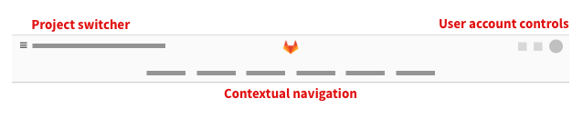 The header contains 3 main elements: Project switching and searching, user account avatar and settings, and a contextual menu that changes based on the current page.
