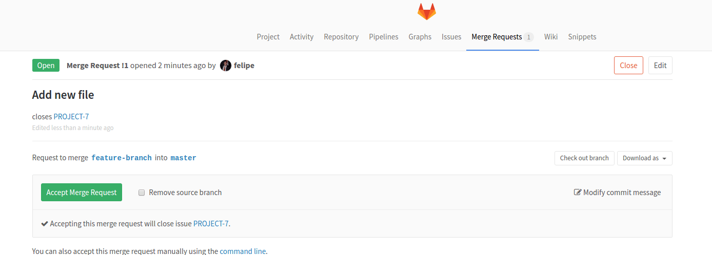 . - Once the merge request is merged, the JIRA issue will be automatically closed with a comment and an associated link to the commit that resolved the issue.