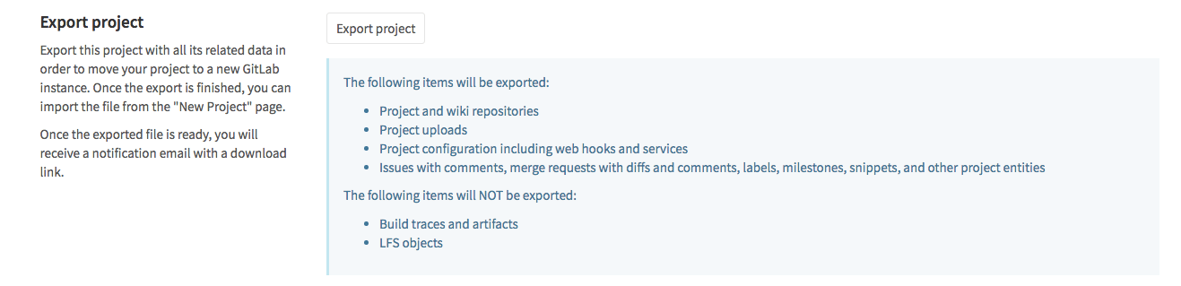 ) under 'Import sources'. Ask your administrator if you don't see the GitLab export button when creating a new project.- You can find some useful raketasks if you are an administrator in the import_export raketask.
